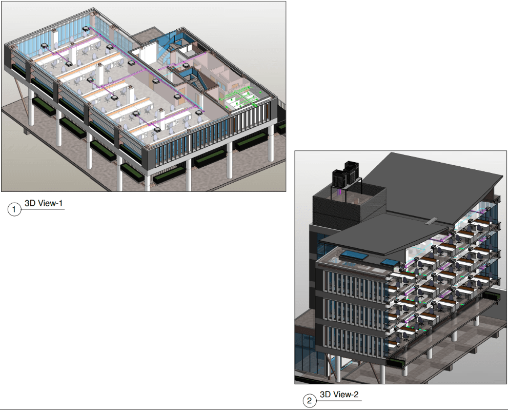 Integrated 3D Model is developed for all the discipline, Archl + MEP + Fire Fighting and changing one discipline design is eaisly highlighted the impact on remaining discipline